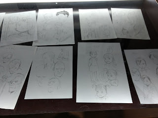 Alguns cadernos de desenho, desde seus 8 anos até o colégio.