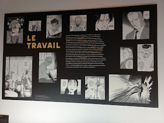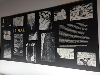 Ao final da visita, tinha uma boutique com praticamente todos os mangás do Urasawa lançados na França (os que eu estava mais interessado, YaWaRa e Happy, ou não foi lançado na França, ou não tinha os primeiros volumes). Tinha também cartões postais e pôsters. Acabei comprando somente o volume de compilação de one-shots, já que é o título mais difícil de se ter uma versão nacional.