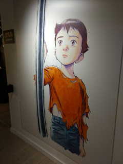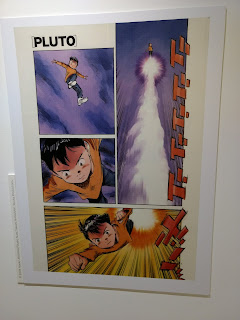 Logo no início somos recebidos por uma foto do autor Naoki Urasawa, e um texto resumido sobre a exposição, onde veremos rascunhos, quadros e ilustrações do mangaká.