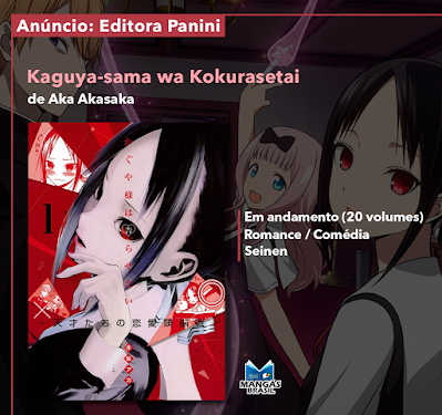 Sinopse: Quando seu pai morreu, Denji ficou preso com uma dívida que era incapaz de pagar. Mas graças à ajuda de um cachorro demônio que ele salvou chamado Pochita, Denji é capaz de sobreviver como caçador de demônios de aluguel. Os poderes de serra elétrica do Pochita são bem poderosos contra estes demônios. E então, quando o Denji acaba sendo morto por um demônio, o Pochita desiste de sua vida para revivê-lo. Mas, agora o Denji renasceu como um híbrido de demônio com humano… Agora ele é o “Chainsaw Man”! Kaguya-sama wa Kokurasetai: Tensai-tachi no Renai Zunousen (Kaguya-sama: Love is War) é uma série de mangás seinen, escrito e ilustrado por Aka Akasaka. A série começou a ser publicada na revista Miracle Jump em maio de 2015, contudo ela foi movida para a revista Young Jump em março de 2016. Está em andamento com 20 volumes.