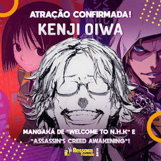 A organização do evento, anunciou hoje a presença do mangakáKenji Oiwa, artista de mangás renomados como: Welcome to N.H.K, Sugar Dark Umerareta Yami to Shōjo e Assassin’s Creed Awakening. Ele estará presente nos dois dias.