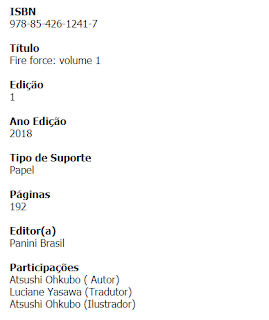 Hoje (8 de junho de 2018) vazou pela site de ISBN, que a Editora Panini (Planet Mangá) irá publicar Fire Force (Enen no Shouboutai), de OHKUBO Atsushi.