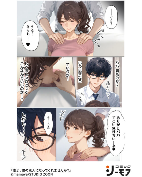 Com quatro volumes publicados até o momento, My Dear Wife, Will You Be My Lover? (tradução livre do título original: 妻よ、僕の恋人になってくれませんか?) é creditado ao criador mamaya e lançado pelo STUDIO ZOON. A trama, de forte apelo adulto, acompanha um casal de 35 anos que enfrenta dificuldades para “reativar a chama” nos aspectos mais íntimos de seu relacionamento. A obra não esconde sua origem: o uso de IA é explicitamente mencionado na própria sinopse.