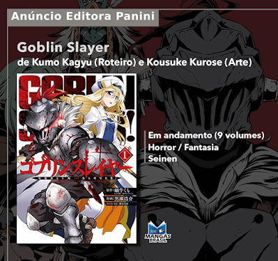 O mangá de “Goblin Slayer” é uma adaptação de Kōsuke Kurose baseada na série light novel de Kumo Kagyu. Sua serialização começou em 2016 na revista Monthly Big Gangan da Square Enix e está em andamento com 9 volumes. Será lançado em dezembro pela Panini.
