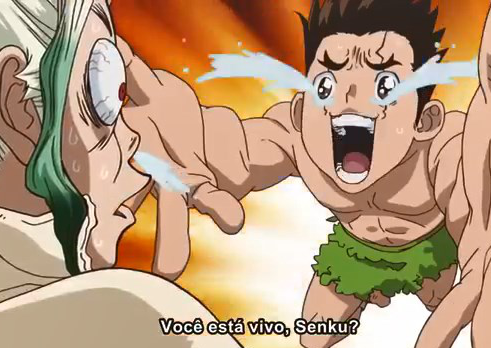 Outro ponto esperado, foi a diminuição da carga cômica em relação ao material original. O que é bem comum, ocorreram em YuYu Hakusho e Fullmetal Alchemist, onde seguimentos de pura comédia foram trocados por momentos sérios ou de drama. E se tratando do mangá de Dr.Stone… TEM MUITAS CARETAS! A TODO MOMENTO! quando se menos espera… BAM! uma careta aleatória aparece, com uma piada nem sempre tão engraçada.