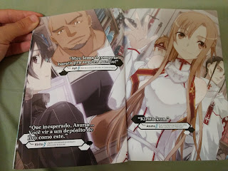 Logo depois temos o primeiro encontro no livro das persoangens principais, Kirito e Asuna, onde ele pede para ela cozinhar um item raro que ele conseguiu. Aqui temos outra diferença que eu notei, pois o Kirito fica muito mais desconfortável com a presença da Asuna, quase um bobalhão, e temos a Asuna já demonstrando interesse no Kirito.