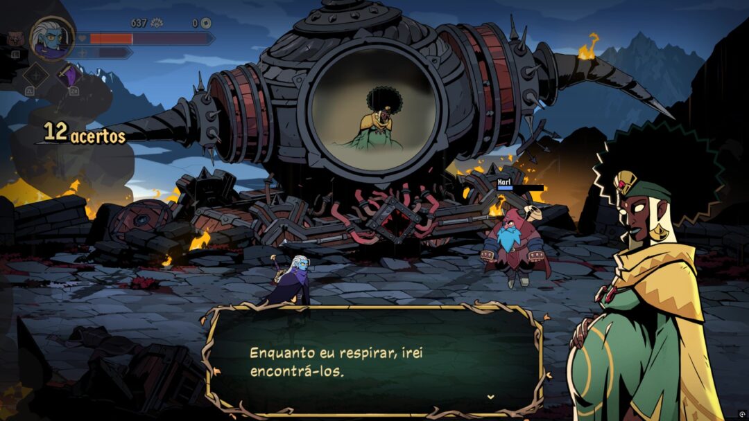 - Karl: anão blindado, lento mas devastador. Sua defesa sólida e força bruta favorecem um estilo mais tático e resistente.
