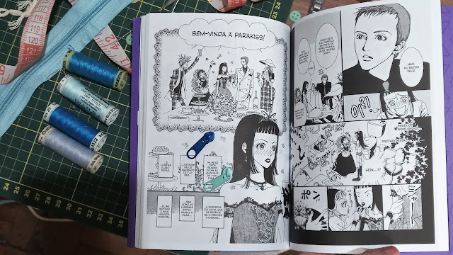 Culpada, Caroline pede desculpas à trupe de costureiros. Eles são pessoas reais, com ambições reais, sonhos e metas. Não estão brincando com máquinas de costura. E eu acredito que essa é a principal lição deste primeiro volume (e destes dois primeiros capítulos. Sim! Esses acontecimentos são apenas dos dois primeiros capítulos do volume 01). Quantas vezes julgamos — ou somos julgados — por não caber dentro dos parâmetros de outrem? Por termos ideais diferentes, por não seguirmos os moldes ou por não nos encaixarmos no formato padrão que esperam de nós? E, ao mesmo tempo, quantas vezes não desejamos ser ou viver diferente do que somos hoje, diferente do que esperam ou projetam para nós, uma nova vida — mais rosa e com cheiro de morango?