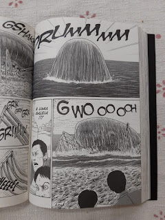 A arte é algo que me surpreendeu positivamente também, os detalhes de fundo e de personagens. Os peixes e animais marinhos são de um realismo surpreendente. Os detalhes pensados, materializando os cheiros dos peixes, é outro detalhe que me impressionou bastante, o que me faz entender o porquê de Junji Ito ser um verdadeiro mestre.