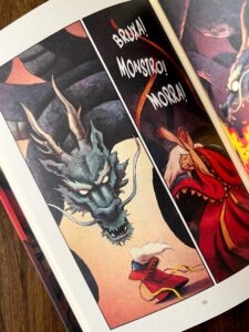 Vale mencionar que o quadrinho conta com cerca de 40 páginas de extras, incluindo textos de apoio sobre a cultura que serviu de inspiração, storyboards da versão em stop-motion e artes conceituais de Guilherme Petreca. Recomendamos a leitura desses materiais para complementar a experiência, especialmente no que diz respeito aos elementos da cultura japonesa e arte teatral do Kabuki.