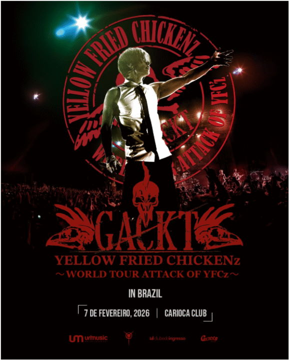 O icônico cantor japonês GACKT fará sua primeira apresentação no Brasil em 7 de fevereiro de 2026, como parte da turnê mundial “WORLD TOUR ATTACK OF YFCz”. O show acontecerá no Carioca Club, em São Paulo, e promete ser um marco para os fãs de J-Rock, Visual Kei e cultura pop japonesa.