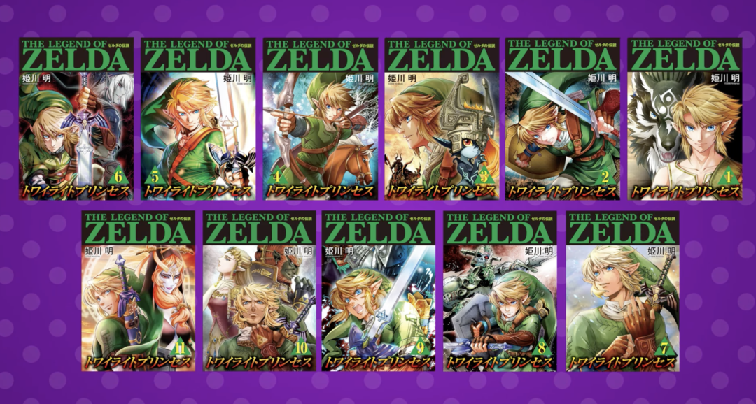 The Legend of Zelda: Twilight Princess, da dupla Akira Himekawa, está completo em 11 volumes. Baseado no jogo de mesmo nome, acompanha Link, um jovem da vila de Ordon que vê seu mundo mudar quando criaturas das sombras invadem Hyrule. Ao entrar na região tomada pela escuridão do Twilight, ele se transforma em lobo e conhece Midna, uma misteriosa criatura do Reino do Crepúsculo. Juntos, eles partem em uma jornada para restaurar a luz em Hyrule, enfrentar o vilão Zant e impedir os planos de dominação que ameaçam tanto o mundo da luz quanto o do crepúsculo.