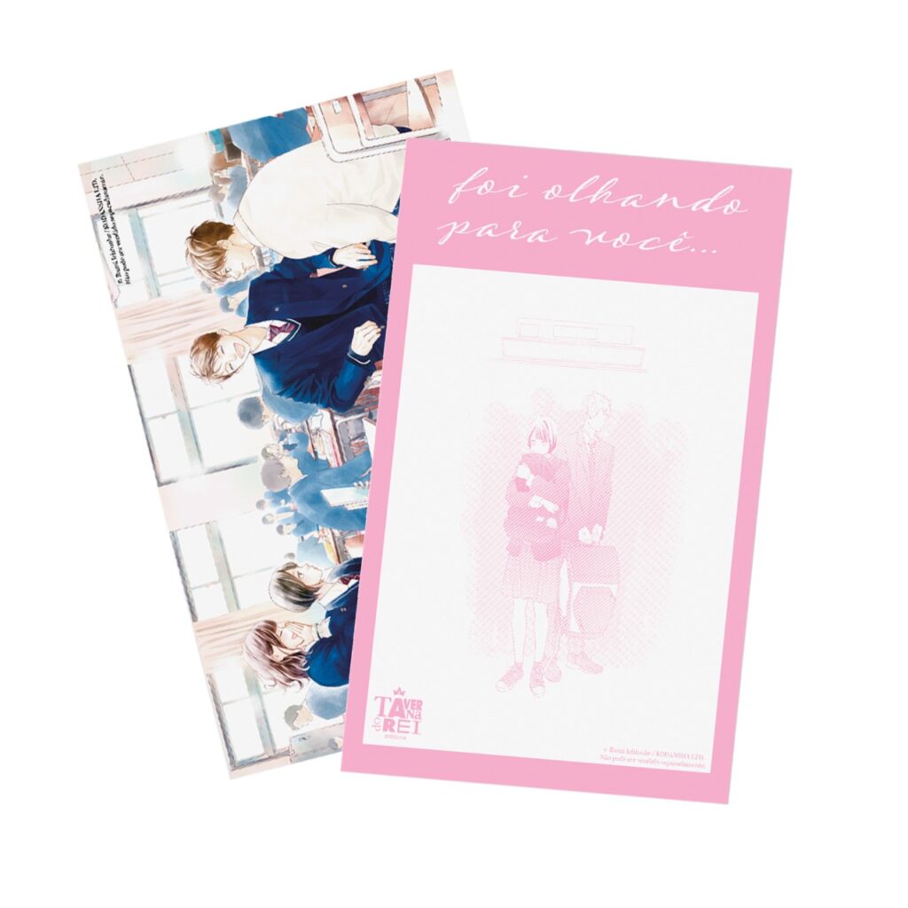 Prepare-se para se emocionar com o lançamento de Foi Olhando para Você (Kimi no Yokogao o Miteita), o mais novo mangá da premiada autora Rumi Ichinohe, vencedora do 48º Kodansha Manga Award. O primeiro volume já está em pré-venda com 20% de desconto na Taverna do Rei, acompanhado de brindes exclusivos — um marca-páginas e um postal colecionável.