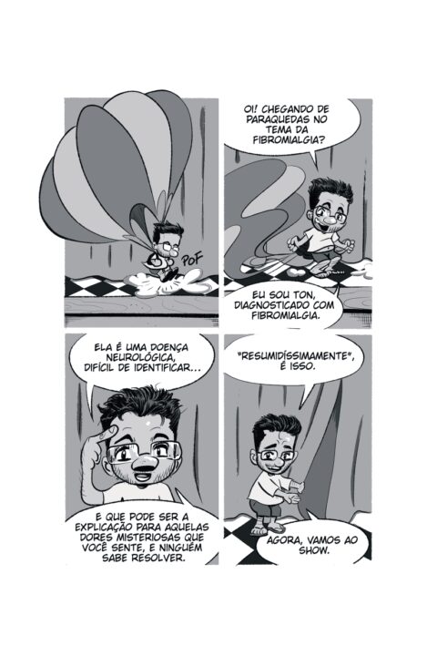 Com abordagem bem-humorada, Ton Veras retrata a incerteza de acordar diariamente sem saber se conseguirá ter um dia comum ou se enfrentará horas de dor intensa. Do diagnóstico, muitas vezes difícil de ser estabelecido, ao tratamento, o artista transforma em narrativa gráfica sua vivência com a condição, reconhecida em 2026 como deficiência.