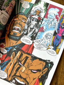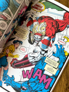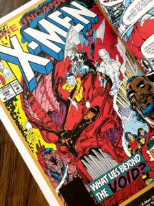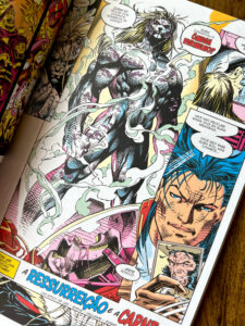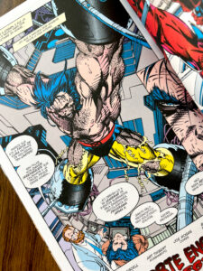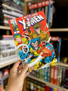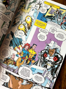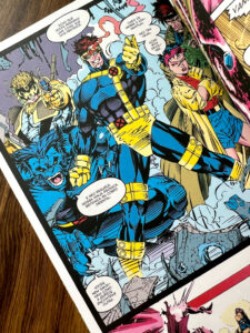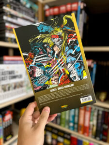 Em Uncanny X-Men, temos a arte de Whilce Portacio, muito característica da época: traços mais grossos e expressivos, mas ainda dinâmicos. Já em X-Men, vemos o icônico trabalho de Jim Lee, com linhas mais finas, quadros amplos e muita ação, o estilo que marcou os anos 90.