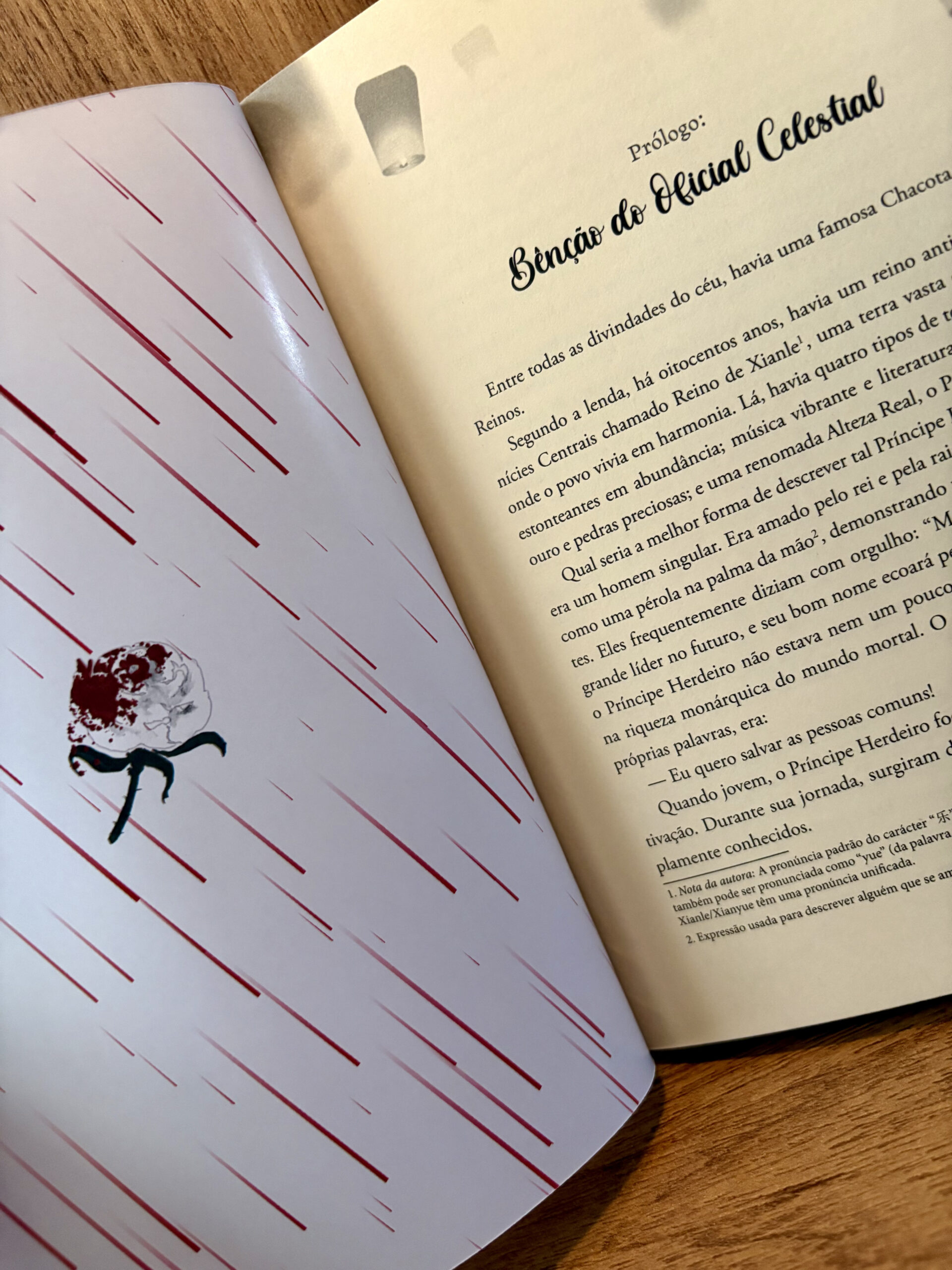 Assim como nos títulos anteriores, “Benção” é uma fantasia histórica ambientada no universo de cultivação espiritual, mas focada em divindades e outros seres sobrenaturais. Uma história de amor profunda e comovente, que se desenvolve em meio a um enredo complexo, repleto de ação e intrigas.