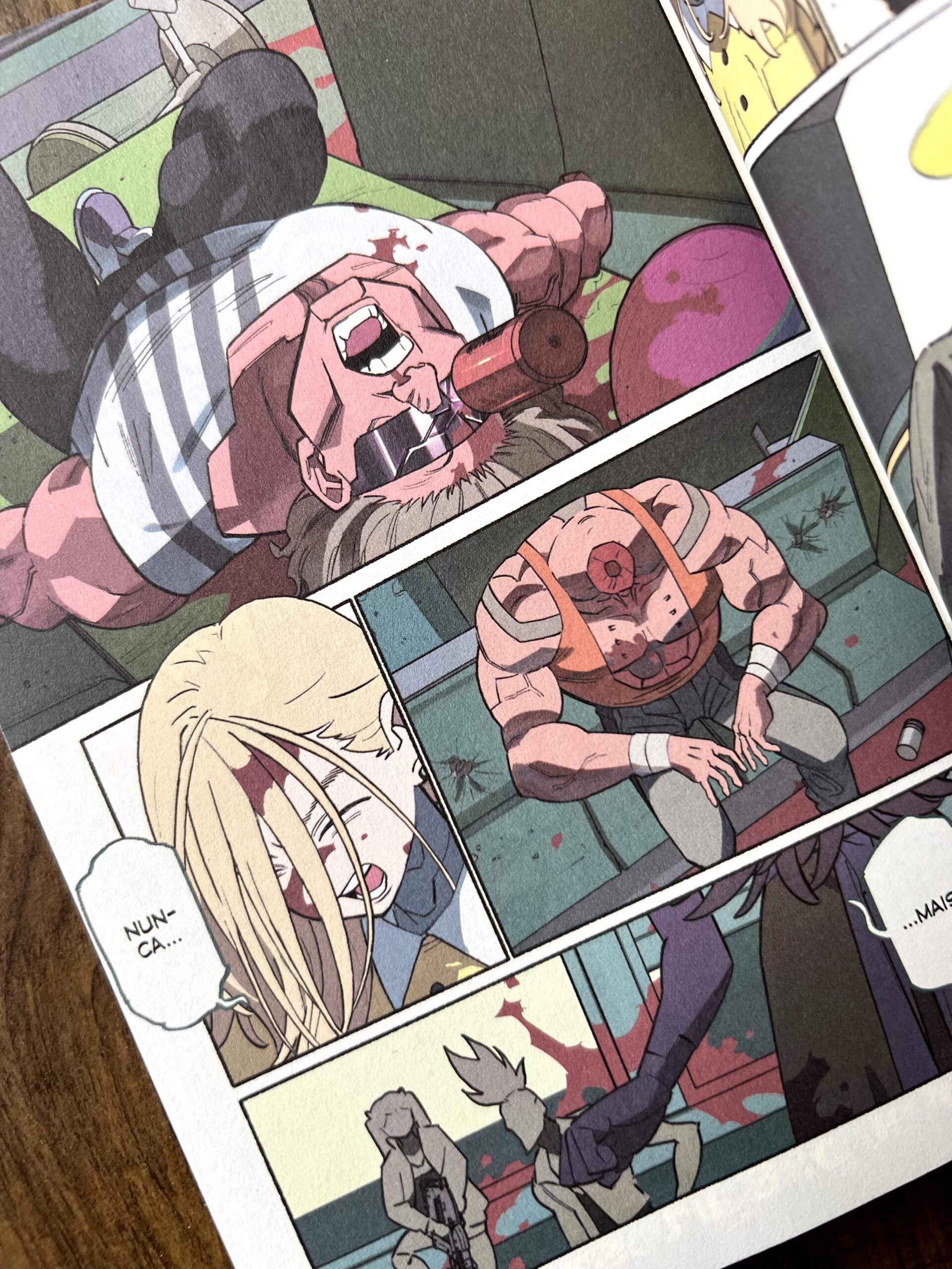 Além disso, a obra desenvolve sua ambientação como se fosse um personagem por si só. Em poucas páginas, fica evidente que Night City é um lugar cruel, onde o crime e a violência fazem parte da normalidade do cotidiano.