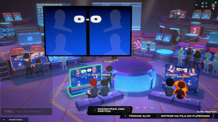 Um dos detalhes mais charmosos de 2XKO é o seu lobby online, que simula uma casa de fliperama. Seu avatar caminha por um ambiente cheio de máquinas de arcade, onde você pode assistir a outras partidas ou entrar na fila para jogar. É uma homenagem direta às casas de fliperama dos anos 80 e 90, muito comuns no Brasil, e que traz uma camada de imersão e nostalgia que poucos jogos oferecem.