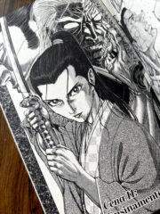 Novamente preciso elogiar a arte desse quadrinho. Poucos artistas conseguem passar tão bem o impacto de cada golpe, o esforço que cada personagem faz para desferir ataques, a contração dos músculos e a excruciante dor ao receber uma pancada ou corte. Takayuki Yamaguchi mescla o exagero com o realismo de uma forma única, fazendo parecer que aqueles golpes e técnicas são possíveis de serem executados, mesmo sabendo que aquilo provavelmente jamais aconteceu. A feição dos personagens, como a de Kogan nos momentos de insanidade, por exemplo, chega a ser tão bem desenhada que causa medo.