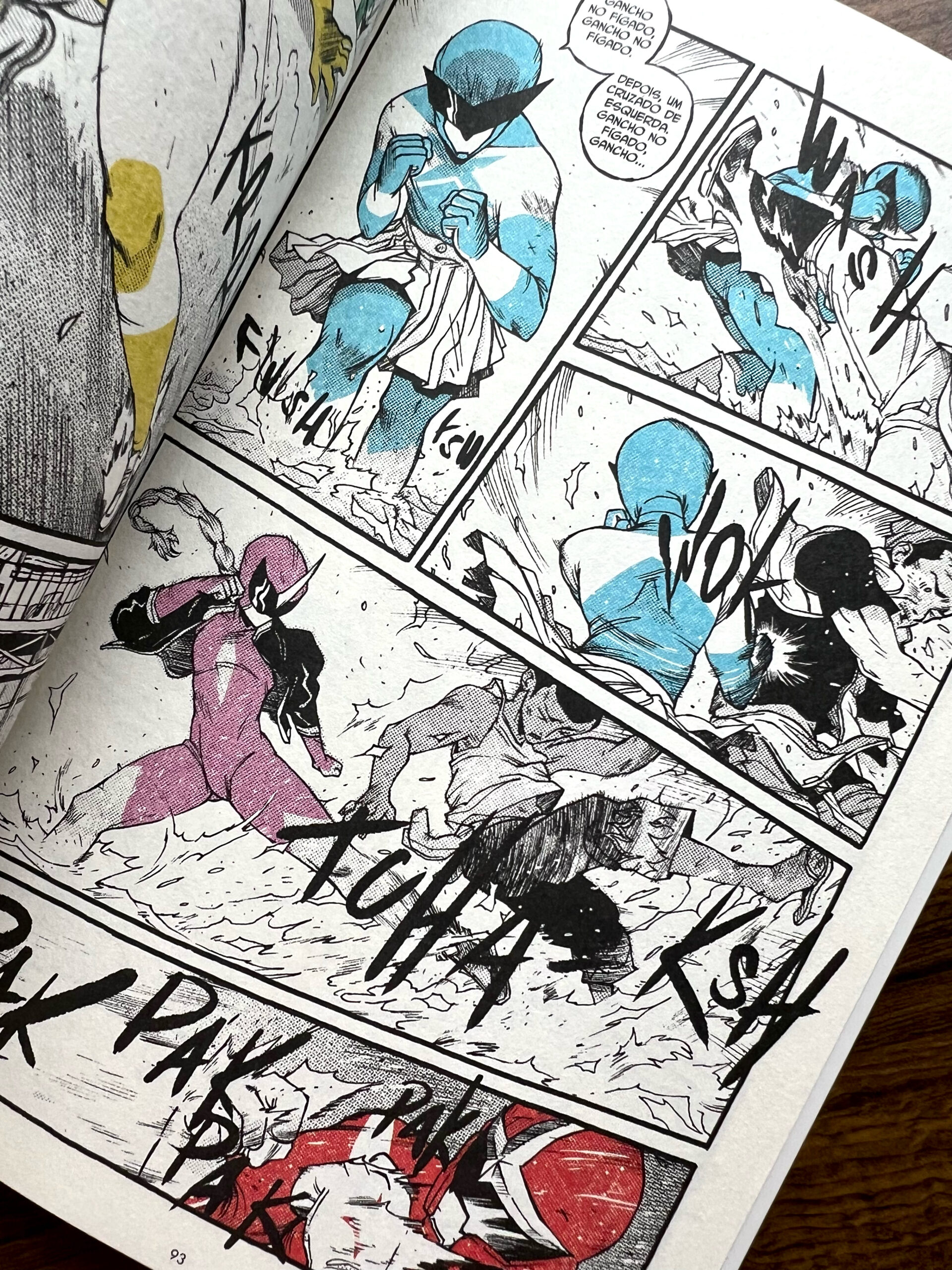 A edição brasileira, lançada pela Comix Zone, chega com acabamento caprichado, capa cartão com orelhas, um belíssimo efeito holográfico, miolo polén bold colado costurado e ainda acompanha quatro cards colecionáveis que seguem o mesmo estilo da capa.