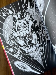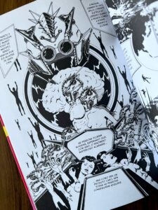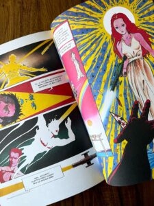A arte é um espetáculo por si só. Além dos desenhos muito bem feitos, a composição das páginas é algo feito de forma totalmente experimental. A quadrinização nada convencional e os ângulos chamam a atenção ao folhear o mangá. Algumas páginas, inclusive, me lembraram de capas de discos de rock progressivo. As referências artísticas do autor ficam muito explícitas, já que ele foi assistente de Go Nagai e se inspirou muito nas obras de Philippe Druillet, como Lone Sloane.