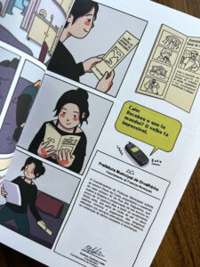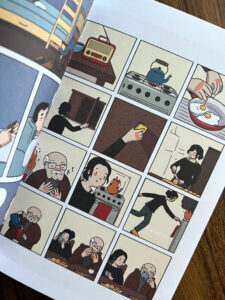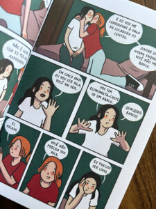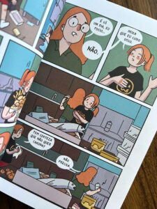 Outro ponto de destaque é a narrativa visual de Helena Cunha. A história flui de maneira natural e rápida, permitindo que a arte carregue os momentos mais emblemáticos, como um bom quadrinho deve fazer. Além disso, os pequenos detalhes, como um porta-retrato ou uma manchete de jornal, enriquecem ainda mais a experiência, contando trechos da história de forma sutil.